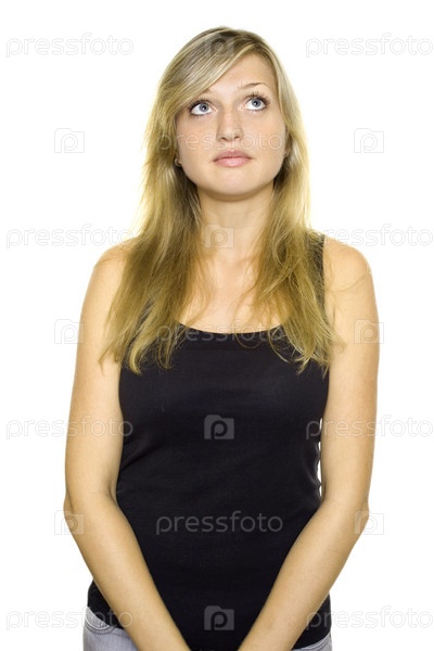 Портрет молодой женщины на белом фоне
