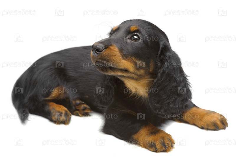 Щенок таксы на белом фоне