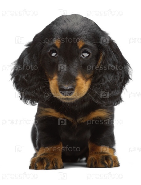 Щенок таксы на белом фоне