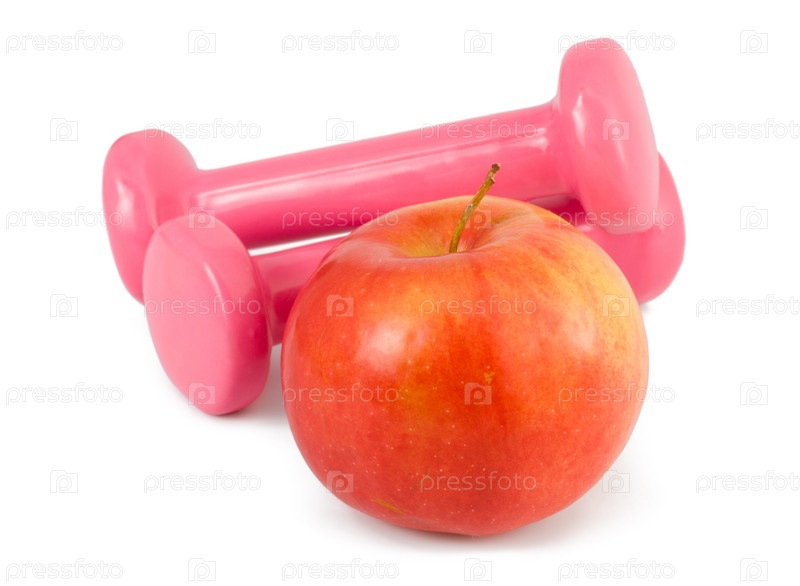 Два гантеля и красное яблоко