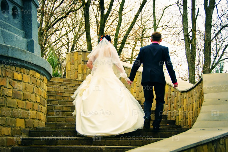 Невеста и жених в парке