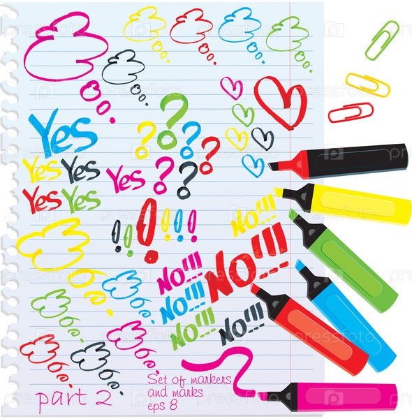 Набор маркеров разного цвета и символы