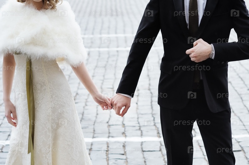 Невеста и жених держатся за руки