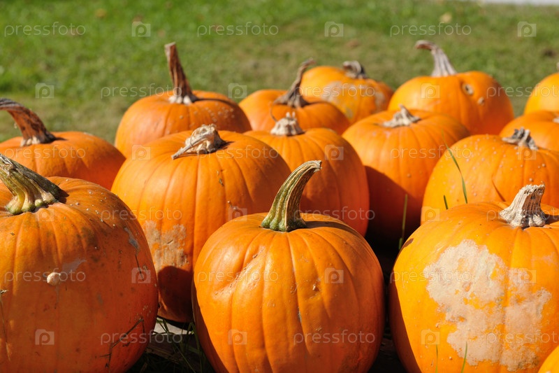 Полезные натуральные тыквы на рынке, готовом к празднику Хэллоуин