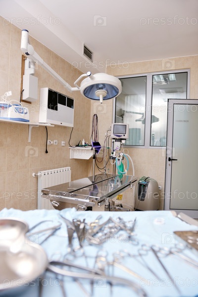 Медицинские хирургические инструменты на столе в кабинете ветлечебницы
