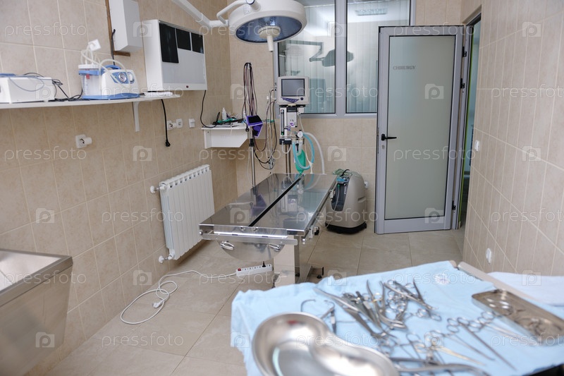 Медицинские хирургические инструменты на столе в кабинете ветлечебницы