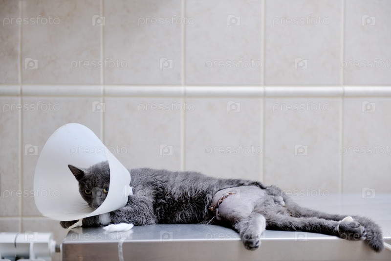 Кошка на кушетке в хирургическом кабинете ветлечебницы