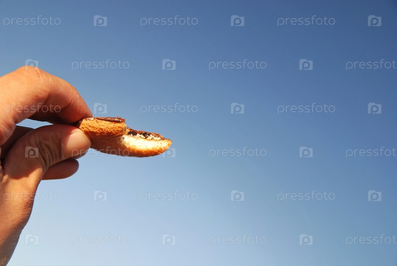Печенье в руке на фоне голубого неба