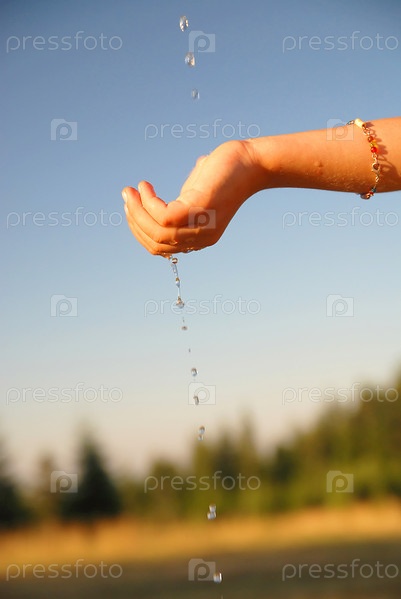 Чистая вода льется на детскую руку