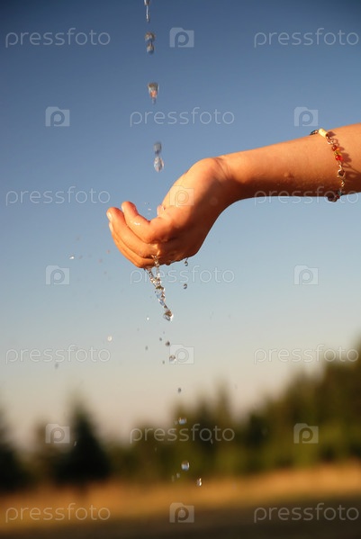 Чистая вода льется на детскую руку