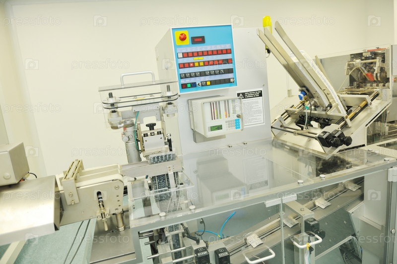 Помещение фармацевтической промышленности с оборудованием по изготовлению лекарств в таблетках