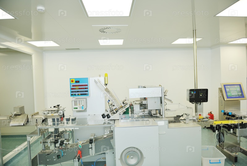 Помещение фармацевтической промышленности с оборудованием по изготовлению лекарств в таблетках