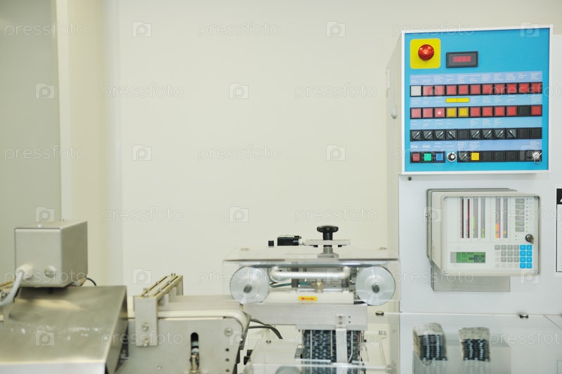 Помещение фармацевтической промышленности с оборудованием по изготовлению лекарств в таблетках