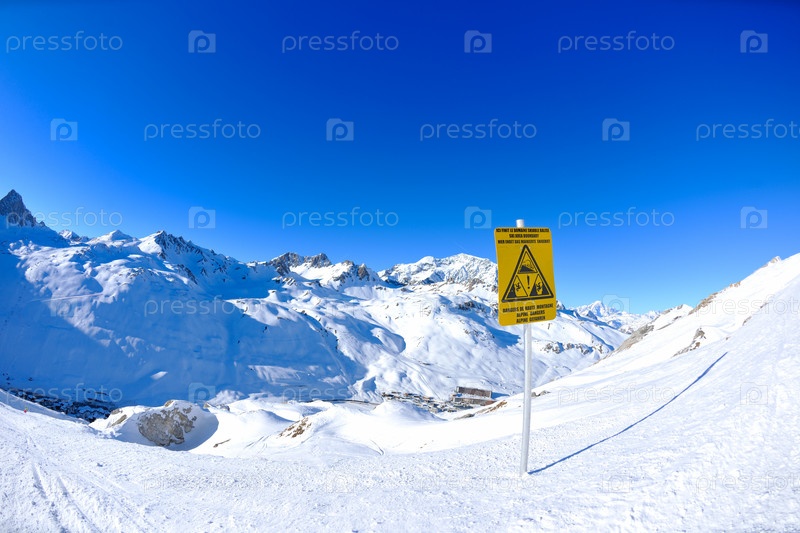 Табличка высоко в горах зимой