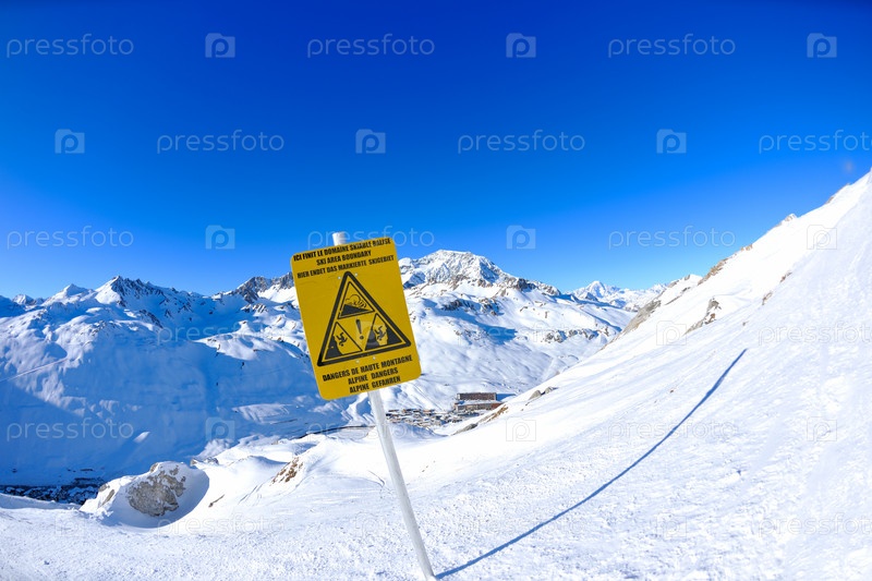Указатель в горах, покрытых чистым снегом