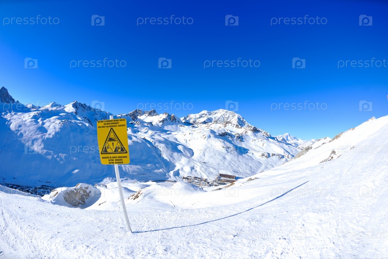 Указатель в горах, покрытых чистым снегом