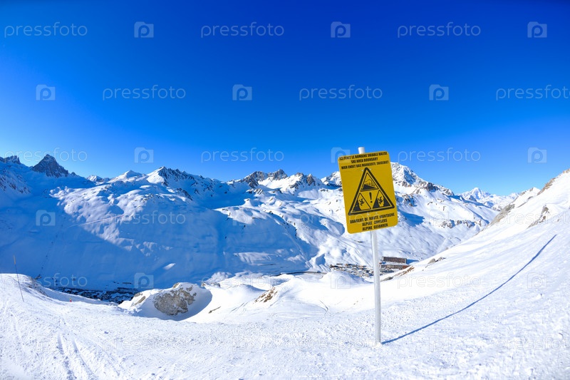 Указатель в горах, покрытых чистым снегом