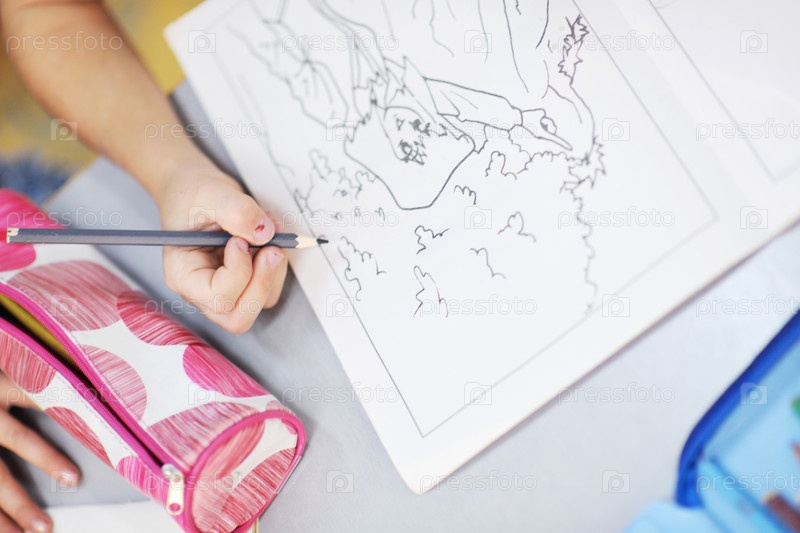 Ребенок рисует карандашом на бумаге
