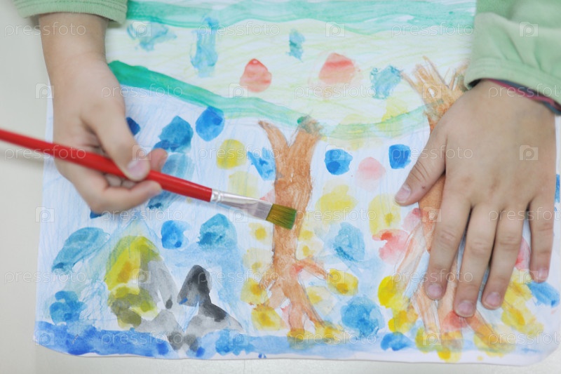 Ребенок рисует красками на бумаге