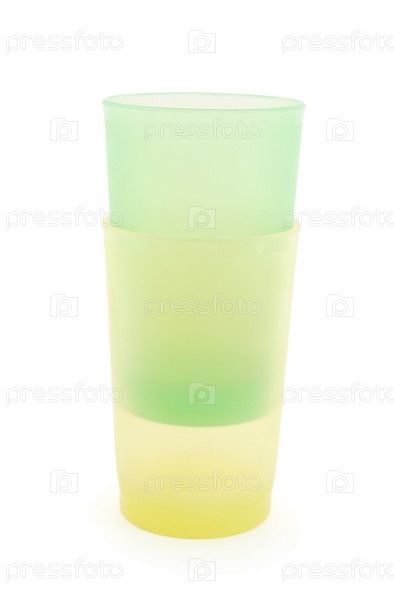 Пластиковые стаканчики на белом фоне
