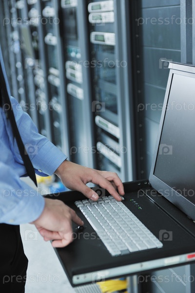 Инженер в серверной комнате центра обработки данных