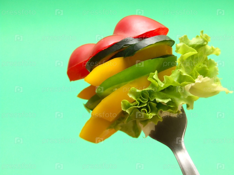 Порезанные овощи на вилке