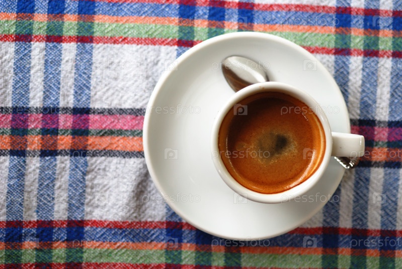 Кофе на красочной скатерти
