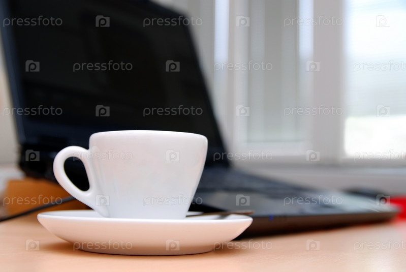 Утренний кофе рядом с ноутбуком в офисе