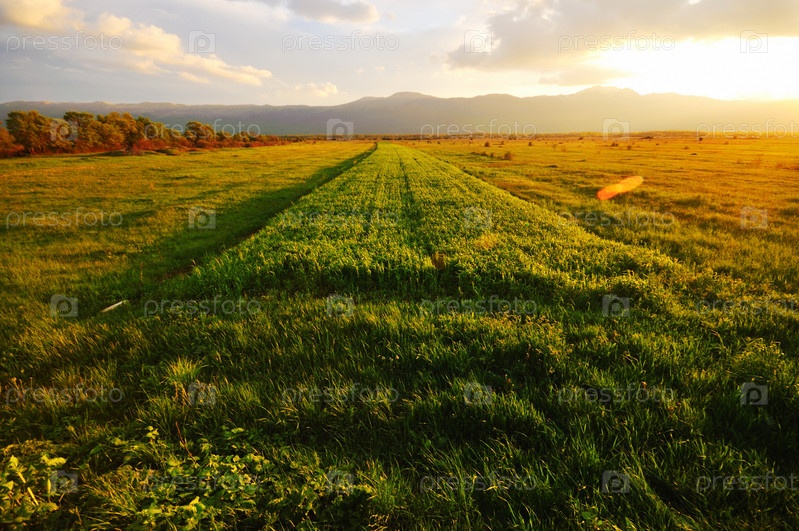 Живописный закат, окрасивший поле в яркие цвета