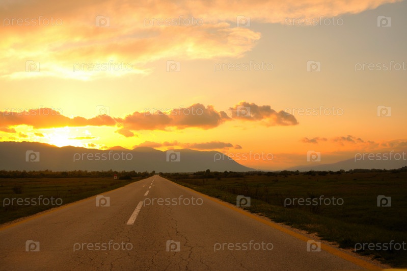 Красивый закат, живописные облака и сельская дорога, манящая приключениями