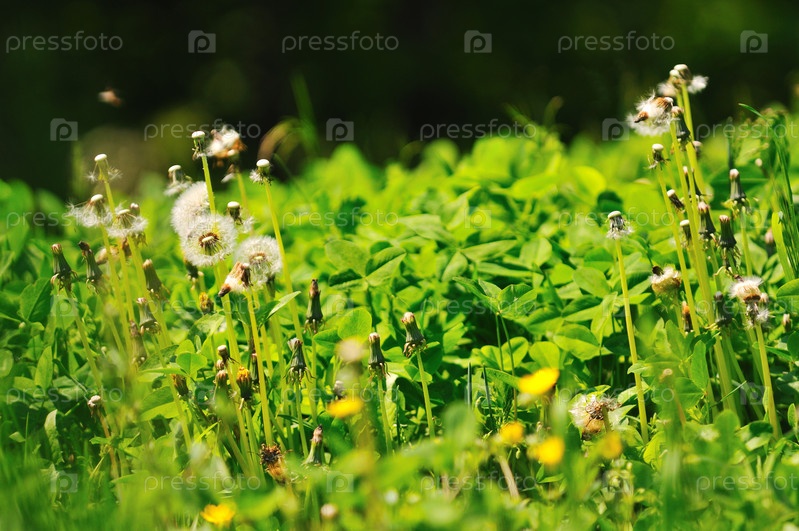 Одуванчики среди травы