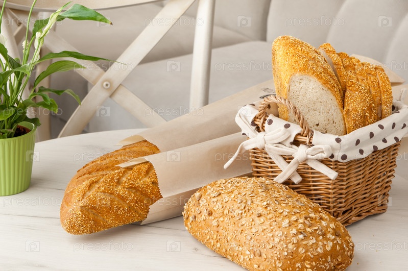 Хлеб в плетеной корзине