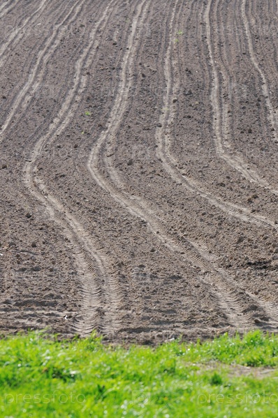 Следы трактора на пашне