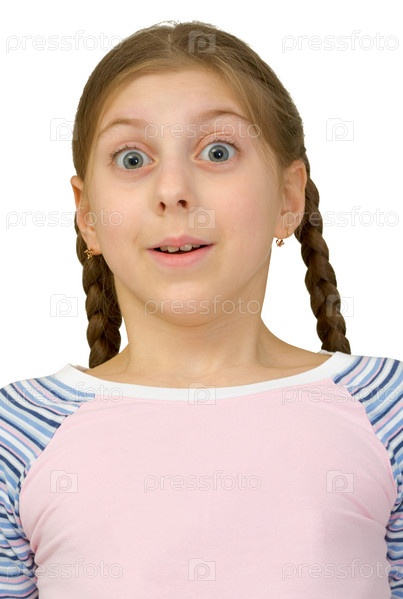 Портрет удивленной девочки-подростка изолирован на белом фоне