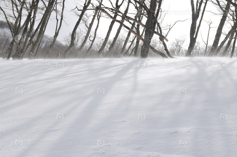 Зима со снегом и сильными ветрами
