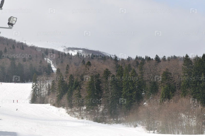 Красивый зимний пейзаж с горнолыжной трассой
