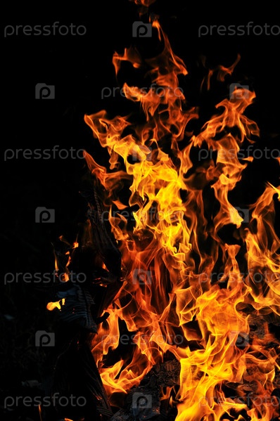 Дикое пламя ярко пылает на черном фоне