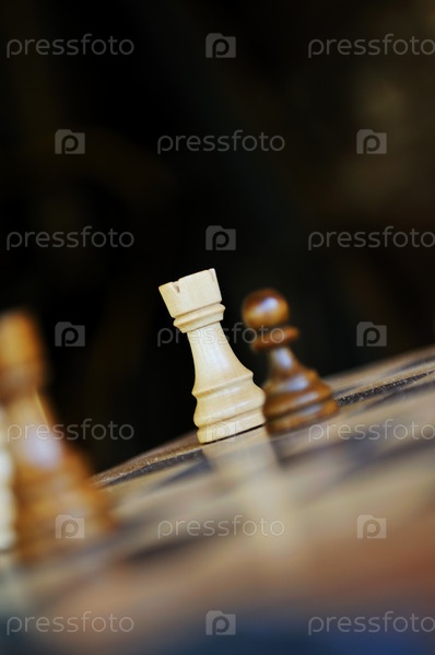 Шахматные фигуры на шахматной доске крупным планом