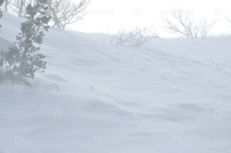 Зима со снегом и сильными ветрами