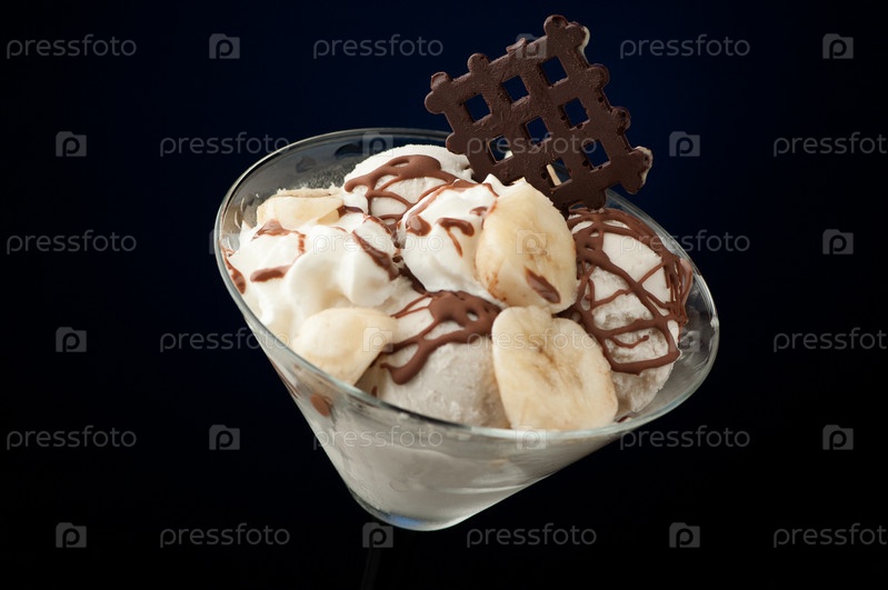 Мороженое в вазе на темном фоне