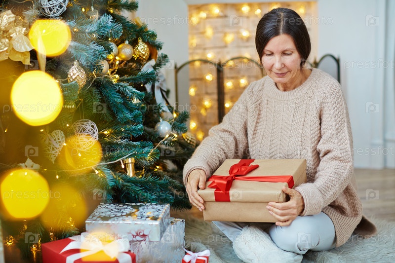 Пожилая женщина с подарком