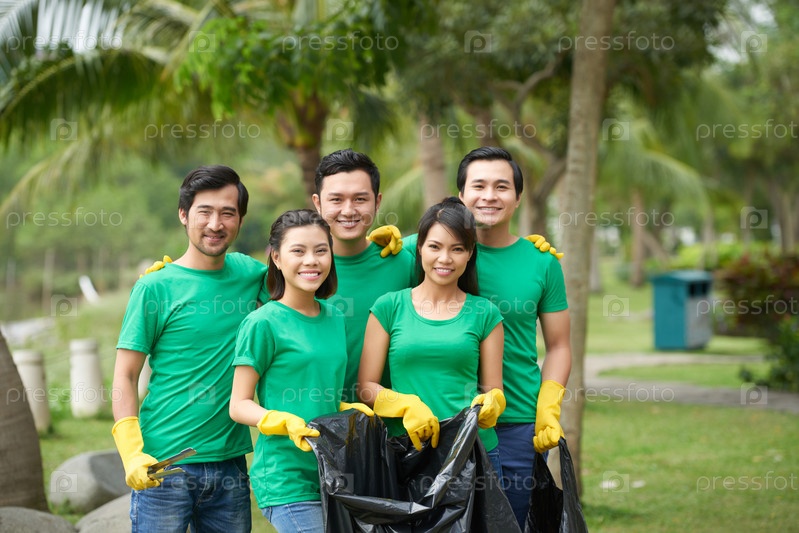 Группа друзей собирает мусор