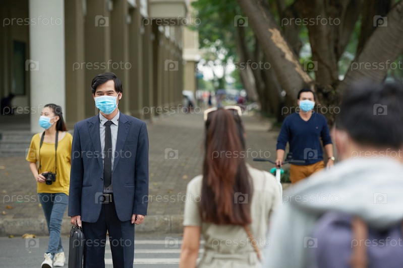 Азиатские бизнесмены в защитных масках