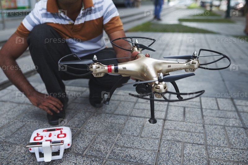 Играя с беспилотником в центре города