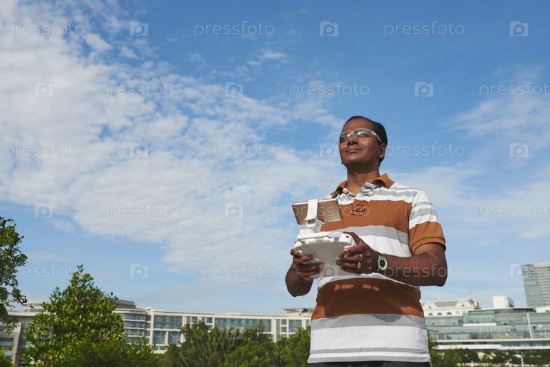 Играя с беспилотником в солнечный день