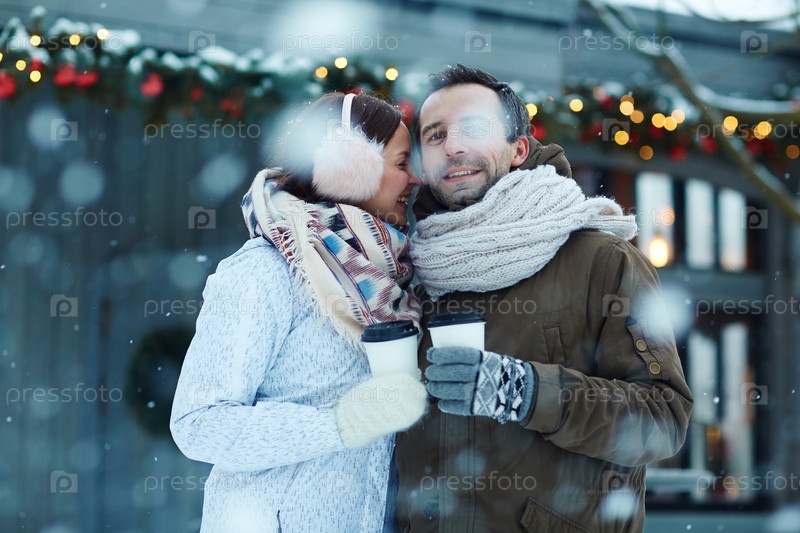 Пара под снегопадом