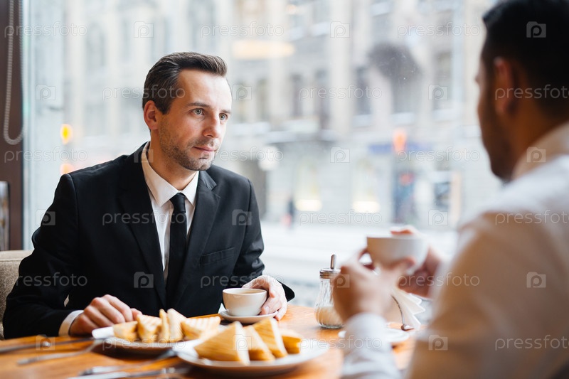 Бизнес-встреча партнеров в кафе