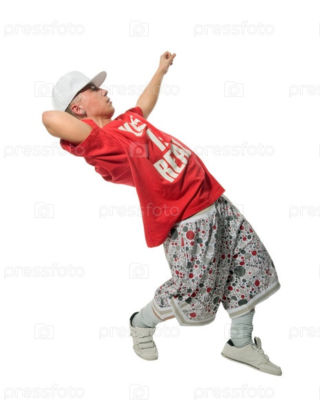Крутая молодая танцовщица хип-хопа на белом фоне