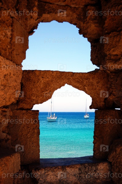Щели древней крепостной стены в Родосе