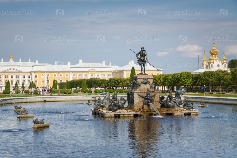 Верхний парк с фонтаном Нептуна в Петергофе, Россия